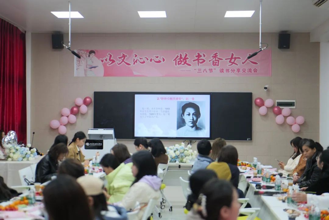 为增添节日气氛,弘扬女性精神,展示巾帼风采,烘托读书氛围,推动我校校园文化的深入发展,校工会联合图书馆于3月7日下午举办了以“以文泌心 做书香女人”为主题的三八妇女节读书分享交流会,旨在通过阅读分享、互动交流等形式,传扬自尊、自信、自立、自强的巾帼之歌,引导并激励广大女性同胞做敢于追梦的奋斗者。