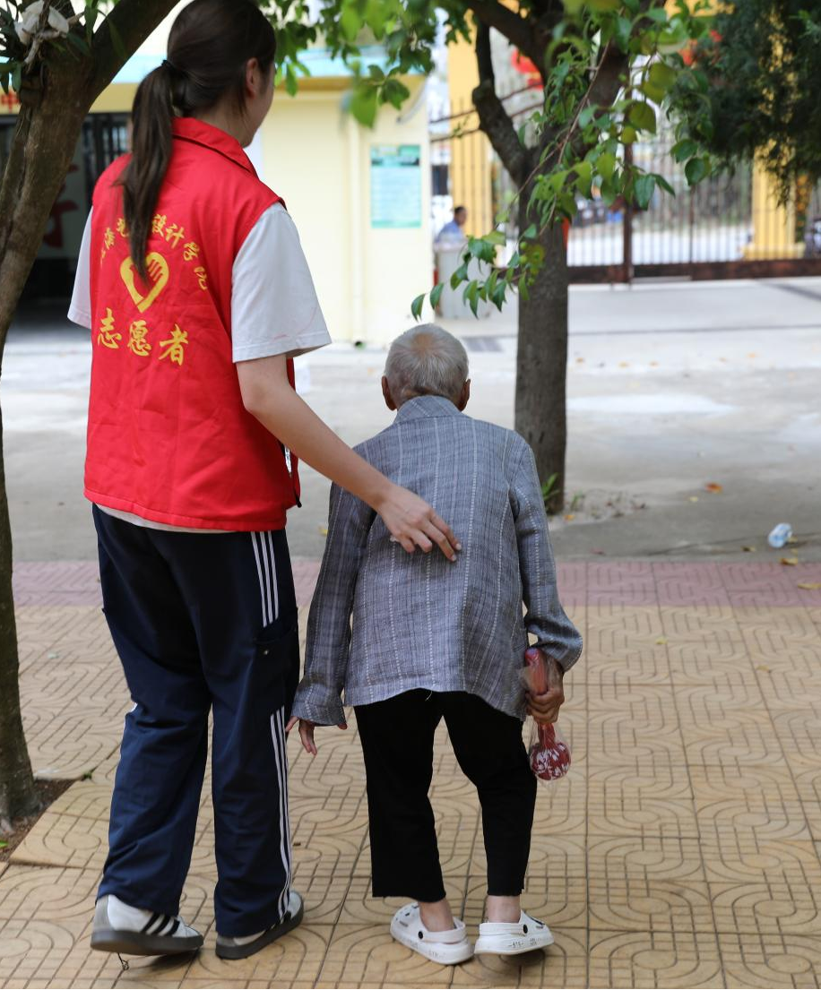 志愿者与老人告别