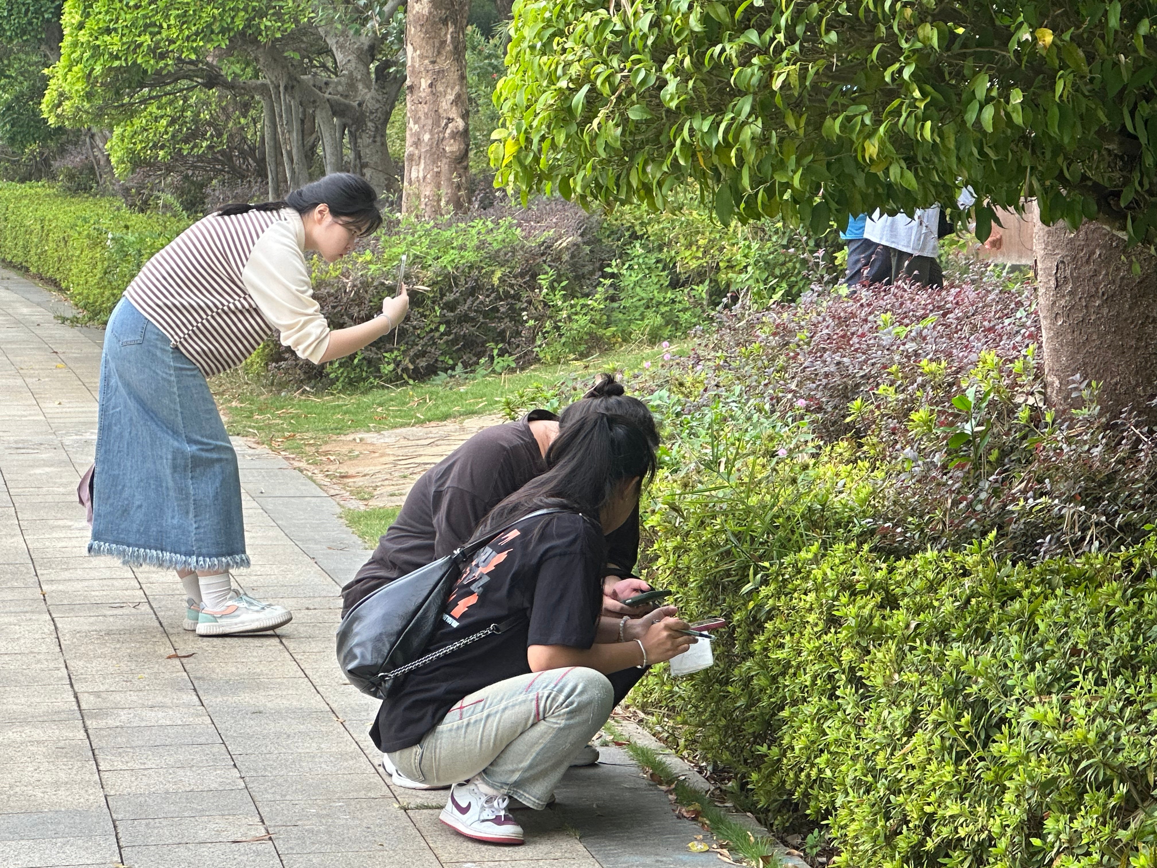 (学生进行植物观察和识别)