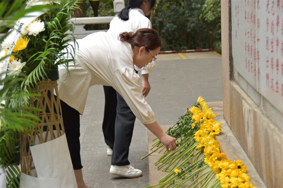 下午,全体人员来到青秀山广西学生军抗日烈士纪念碑,聆听广西学生军的英勇故事,缅怀革命先烈的丰功伟绩。现场,全体党员干部怀着崇敬的心情向革命烈士纪念碑三鞠躬,并向革命烈士敬献鲜花。
