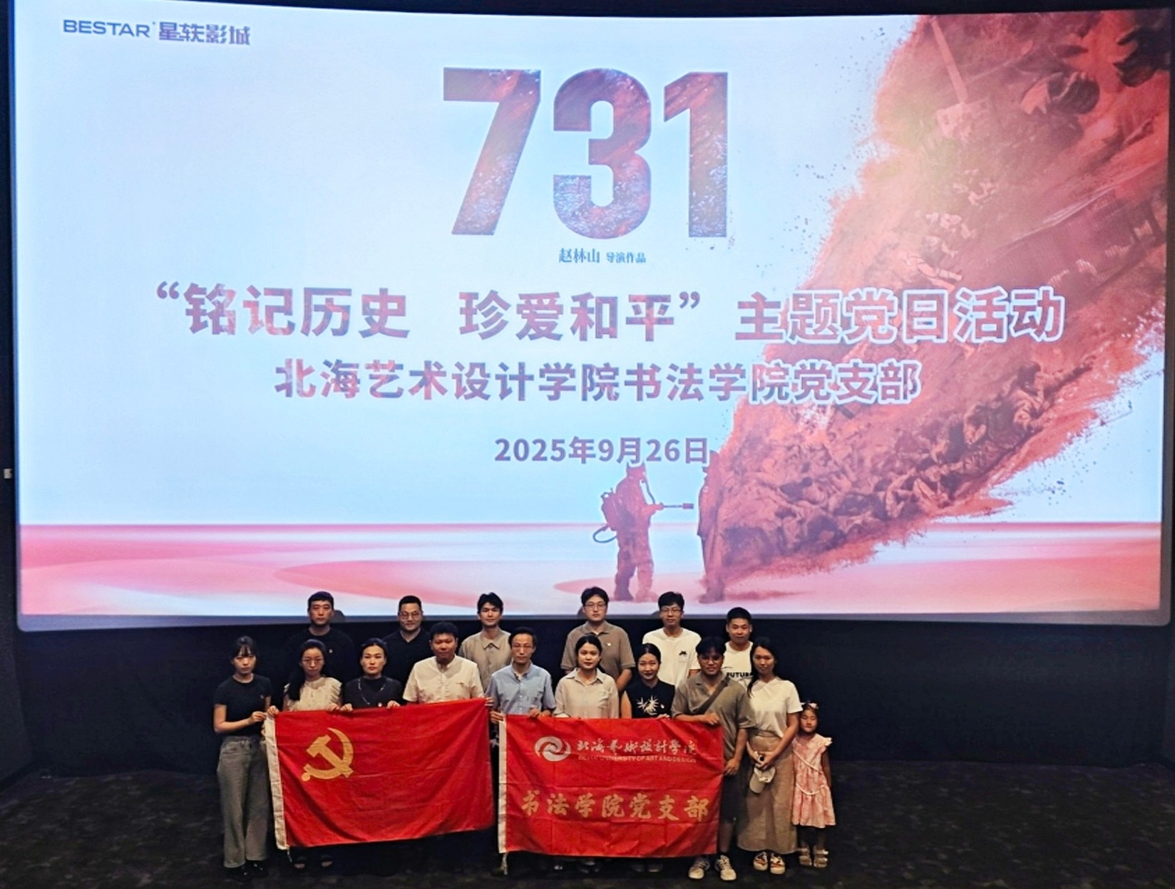 为深化爱国主义教育,弘扬伟大抗战精神,9月26日,书法学院党支部组织全体教师党员开展“铭记历史,珍爱和平”主题党日活动,集中观看历史题材电影《731》。