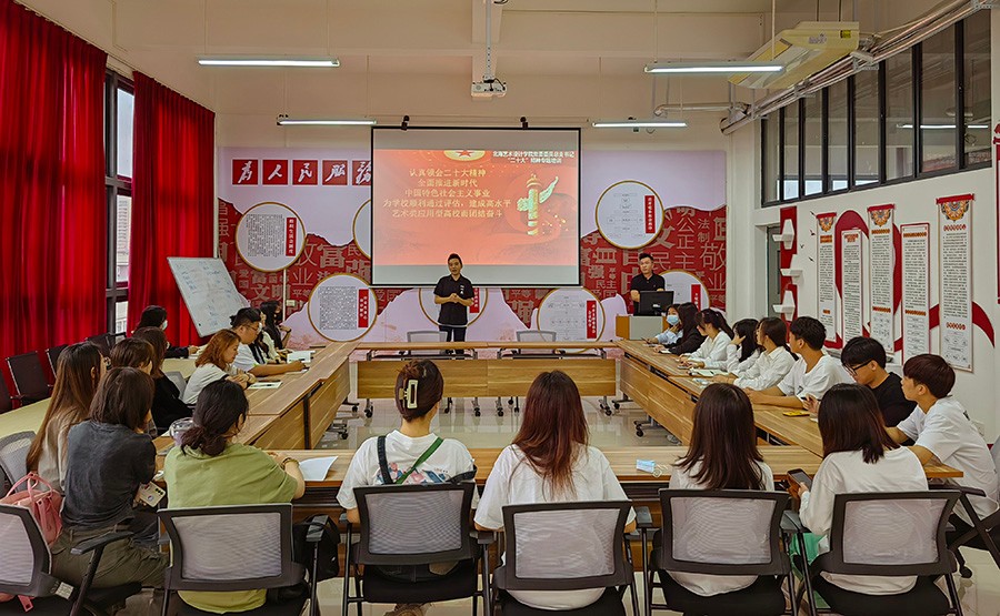 3月17日上午,第一党总支举办设计艺术学院党的二十大精神宣讲会,校党委委员、副校长邱杰主讲,党总支书记黄锦主持,学院师生党员、入党积极分子代表参加。