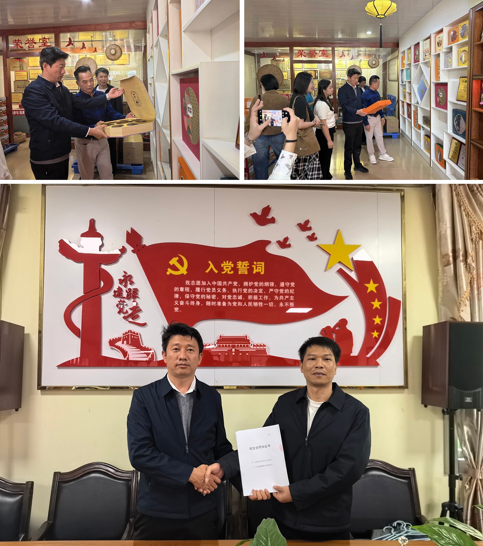 在广西北海慧雅浦为文创有限公司,支部党员与教师与企业方围绕品牌设计课程的合作项目进行深入洽谈,签订校企合作协议。旨在将高校设计创意资源与企业市场实战需求紧密结合,通过融入合浦本土文化元素,打造兼具地域特色与市场竞争力的文创品牌,为后续课程作业与市场实践的结合搭建有效平台。