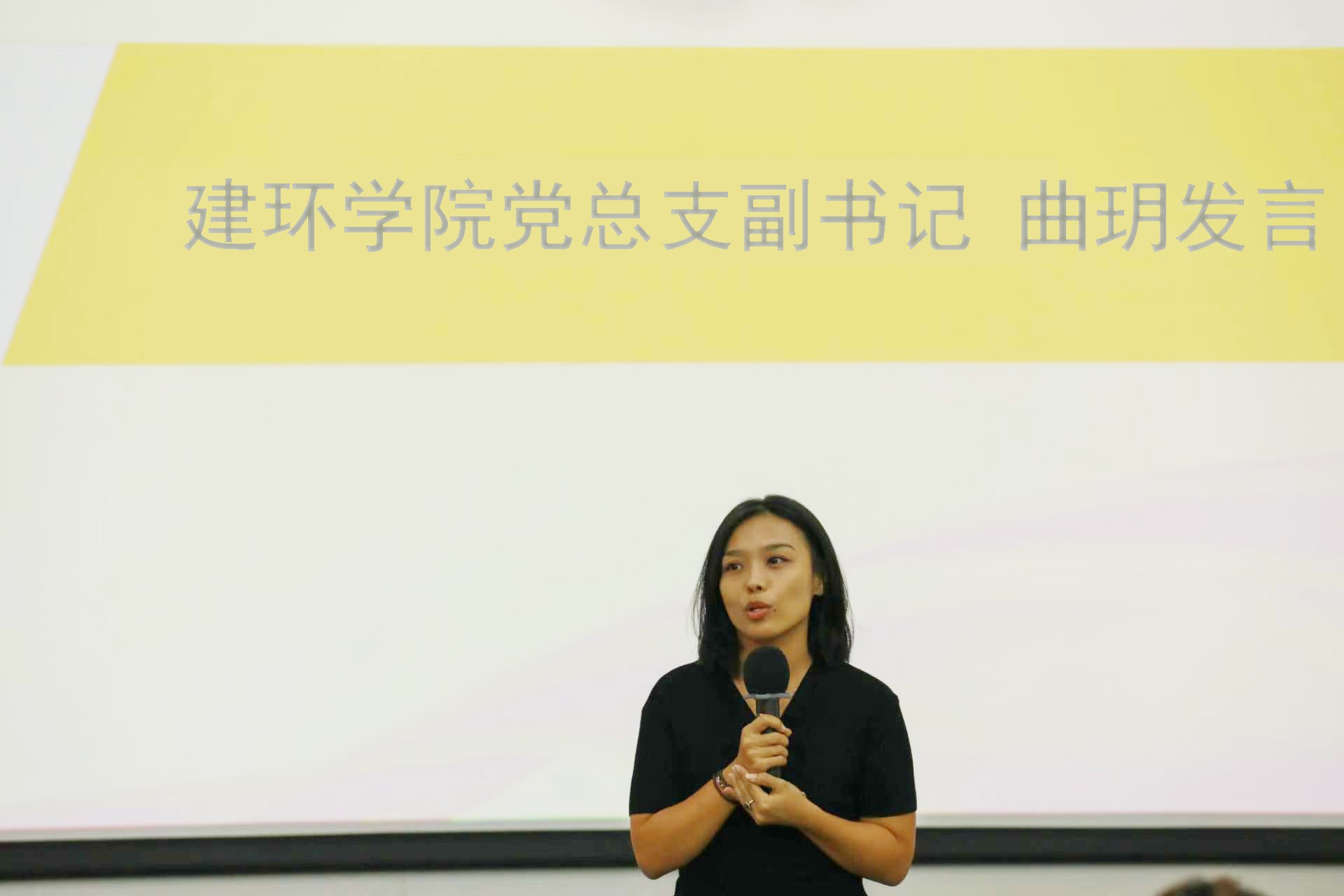建筑与环境艺术学院党总支副书记曲玥在讲话中强调了提高政治觉悟的重要性,并鼓励学长学姐们为新生树立榜样,脚踏实地工作,高调做事,低调做人,彰显学院特色,并希望组织成员们和平相处,团结一致,共同成长。