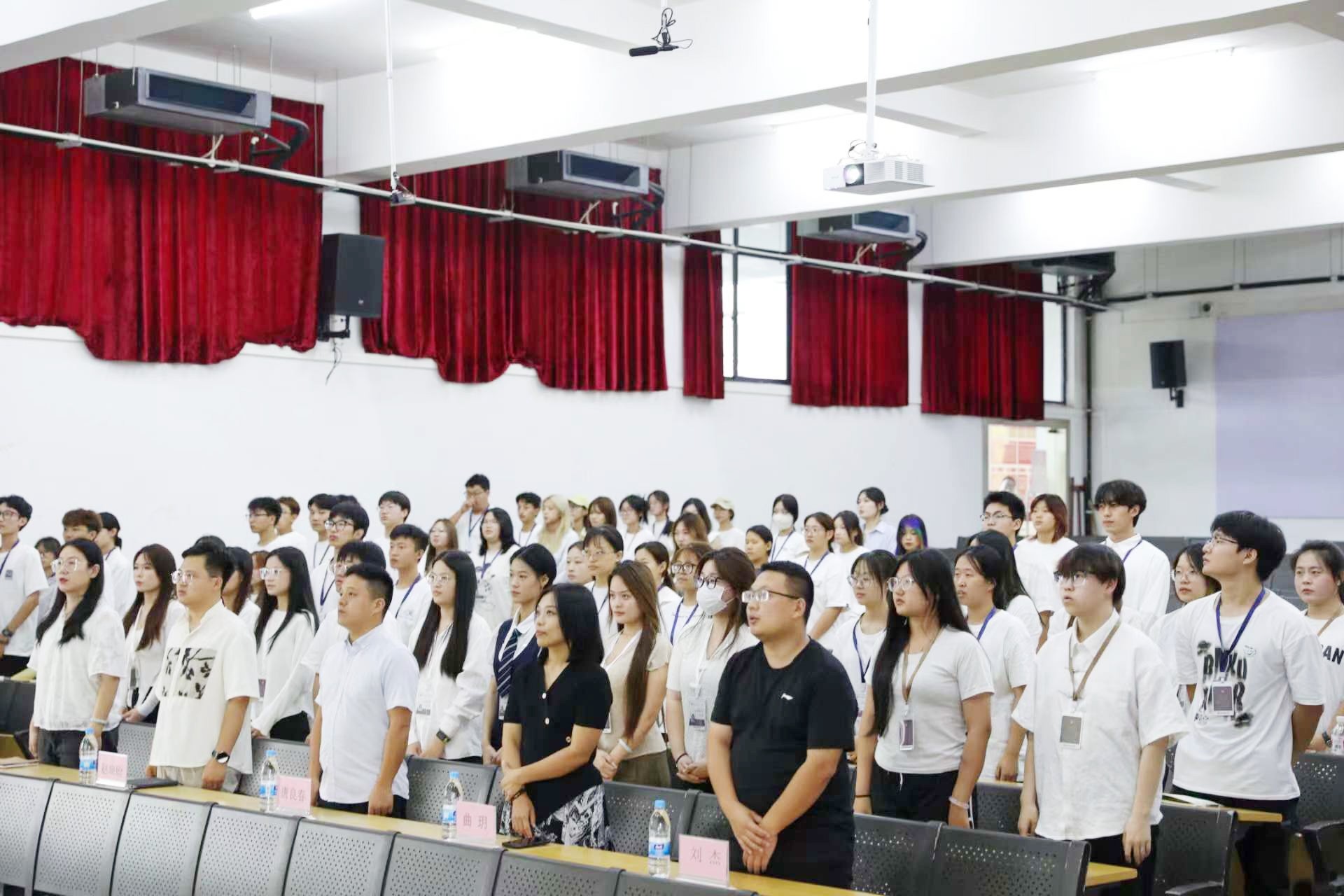 会议伊始,全体成员起立奏唱共青团团歌,展现了同学们的青春活力和对未来的憧憬。歌声中,大家共同感受到了作为新时代青年的责任与使命,激发了在座每个人的奋斗热情。