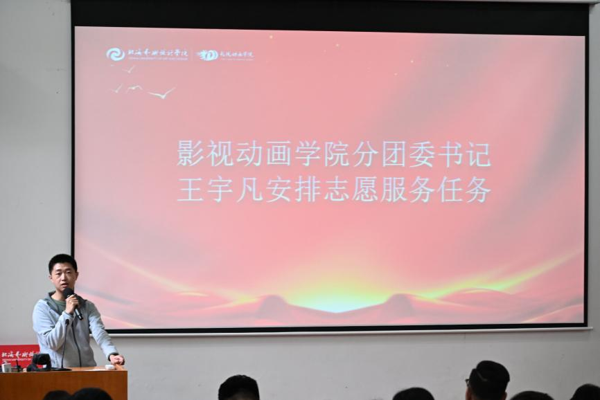 随后,影视动画学院分团委书记王宇凡部署具体志愿服务任务,明确校园各区域清洁工作的责任分工与执行标准,为志愿行动提供清晰路径。