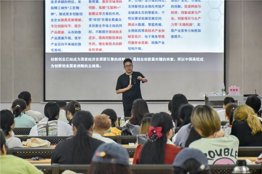 焦教授讲到,创新创业已成为国家经济发展新引擎的战略,国家、中国企业、高等教育、当代大学生都需要创新创业教育。作为当代大学生,在“互联网+”创新创业大赛的教育中,不仅仅学习的是专业知识,更是对思维方式、创新能力和意志力的培养。同时,希望大家积极参加各类赛事,对校赛、集训营、高校联赛、国赛等都认真准备,将项目不断细致打磨提升,让自己成为一个真正的创业人。
