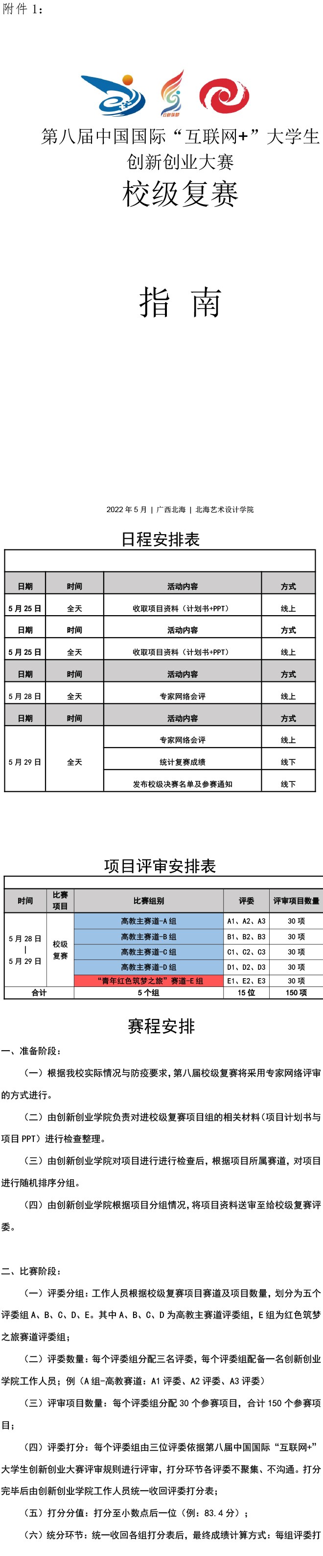 北海艺术设计学院第八届中国国际“互联网+”大学生创新创业大赛校级复赛入围名单公示与参赛通知