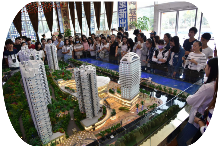 “德利·海北海”是有广西德利投资集团有限公司开发的新楼盘,其楼盘的设计及公司服务得到广大群众的认可,在北海市房地产业内享有较高的美誉。我院师生在公司讲解员的介绍下,首先参观了“海北海”楼盘的沙盘,了解该小区的综合整体规划、户型设计、区域特色等,体验和感受公司的设计理念和管理文化,了解未来房地产行业的发展趋势和动向。