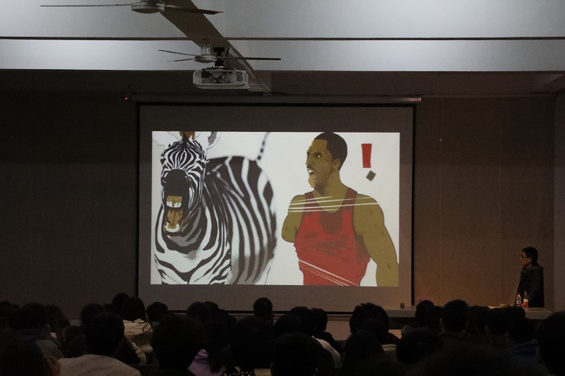 随后,艾胜英教授播放了学生优秀动画短片作品《和斑马一起奔跑》、《吃早饭啦》、《我和老爸》、《电梯口》、《一指城》等,希望同学们要善于把握住生活中的每一个灵感瞬间,用动画的语言将其延伸,从而表达其深意与艺术性。