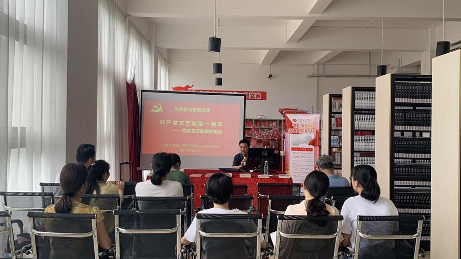 在全党如火如荼地开展党史学习教育之际,2021年5月28日下午,马克思主义学院组织全体党员、教师,在学校图书馆党史阅读角开展思想政治理论课教师理论学习暨党史学习专题党课活动,由马克思主义学院罗喜江教授作题为《共产党文艺政策一百年——中共文艺政策的形成》的党史知识培训。活动由马克思主义学院院长姜献生教授主持。
