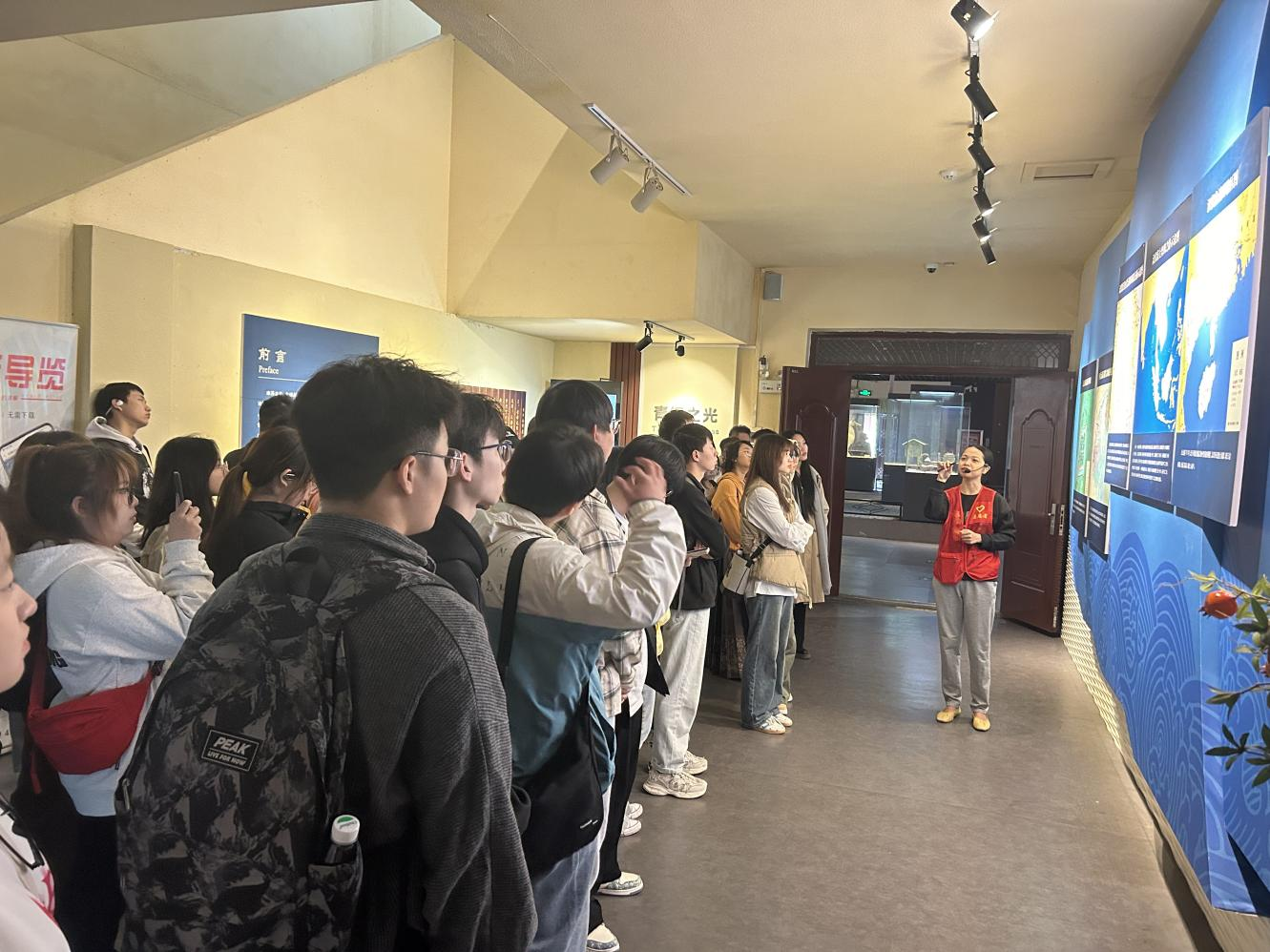 学生聆听讲解员讲解