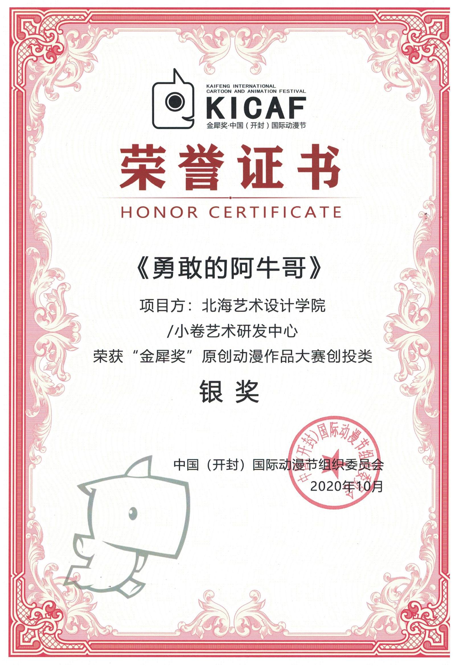 《勇敢的阿牛哥》第二届金犀奖·动漫节创投类“银奖”