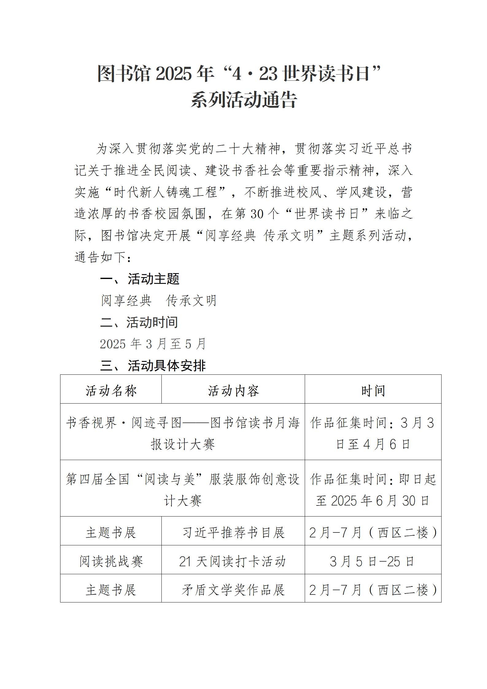 图书馆2025年“4•23世界读书日”系列活动通告