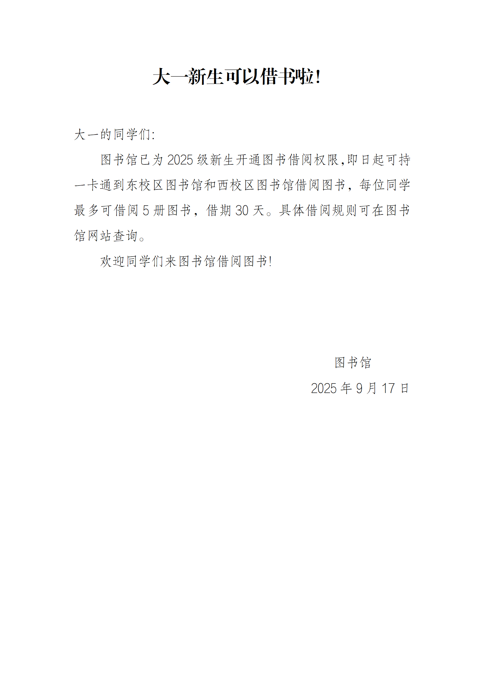 大一新生可以借书啦!