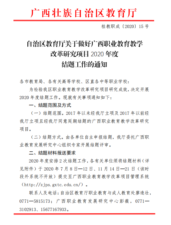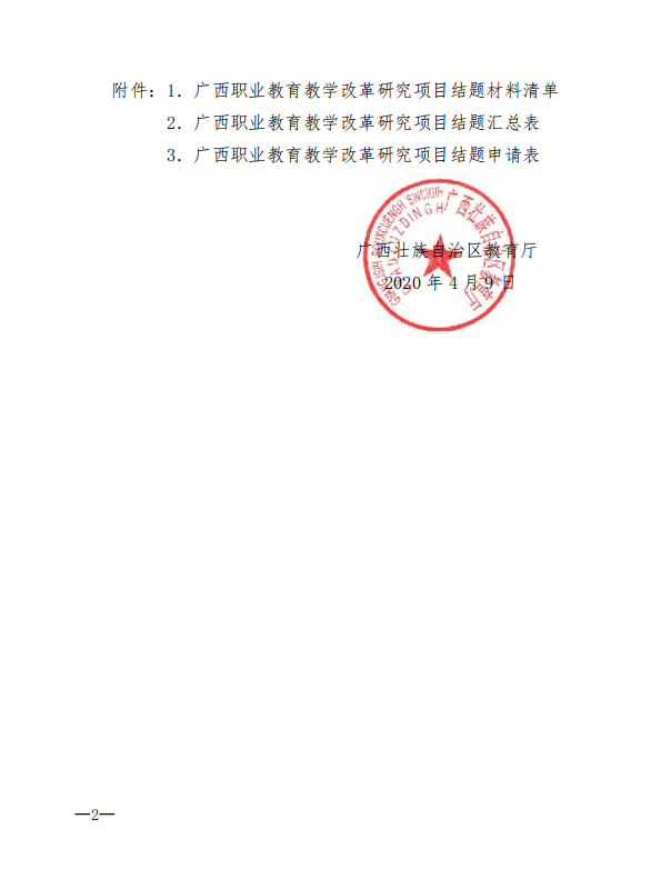 自治区教育厅关于公布2020年度 广西高等教育本科教学改革 工程项目结题工作的通知