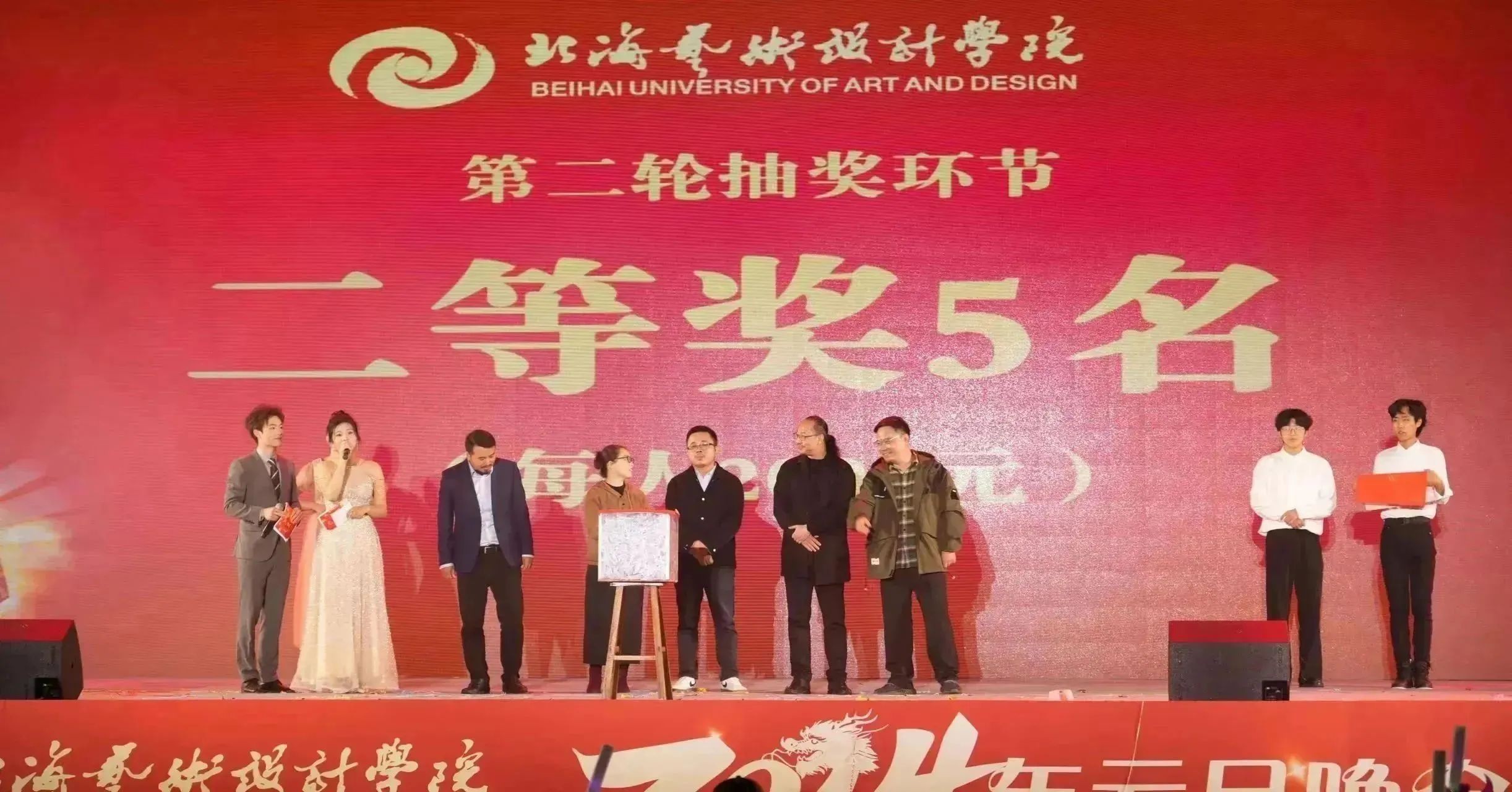 精彩的歌舞表演告一段落,二等奖的抽取即将开始!