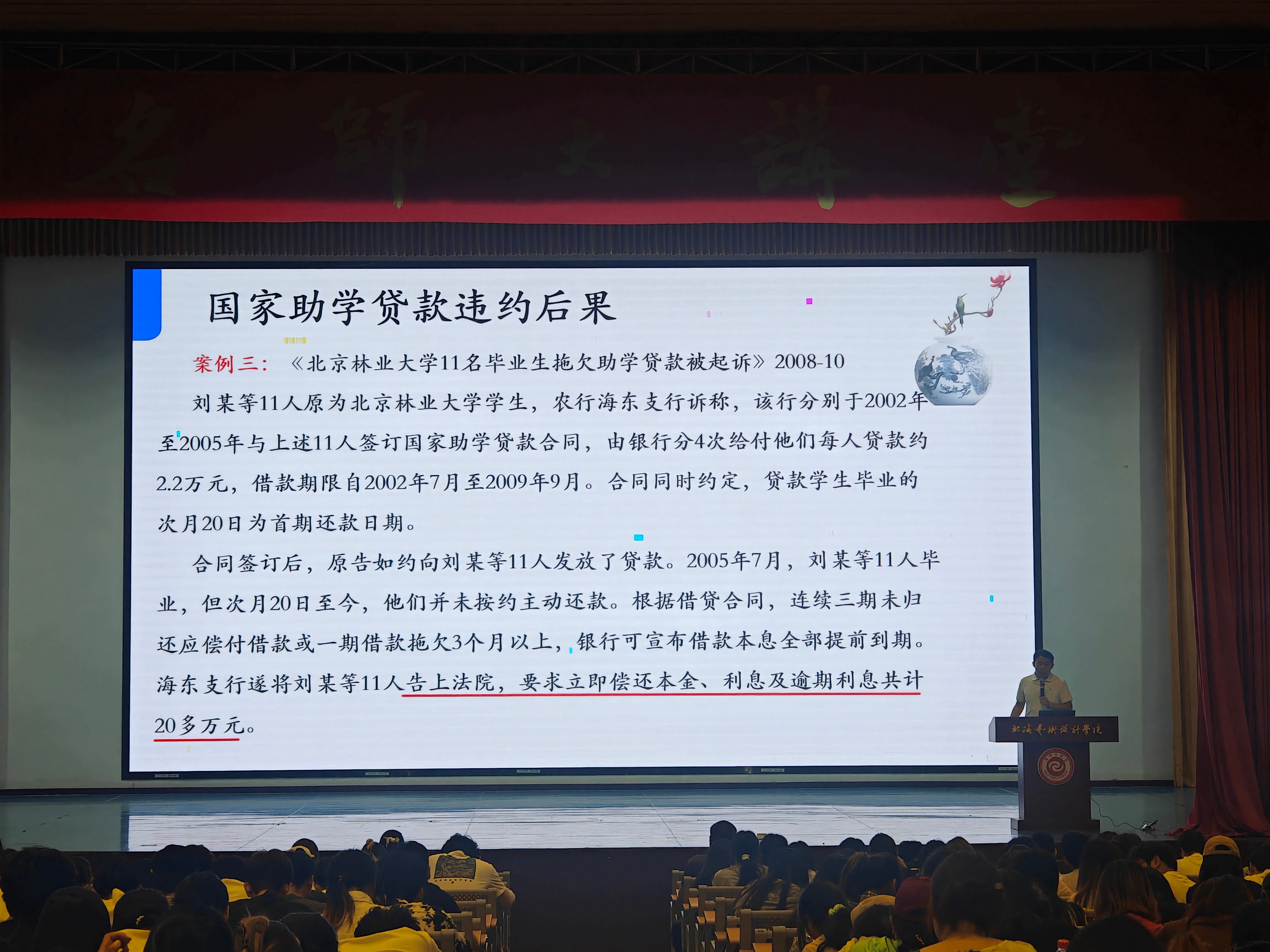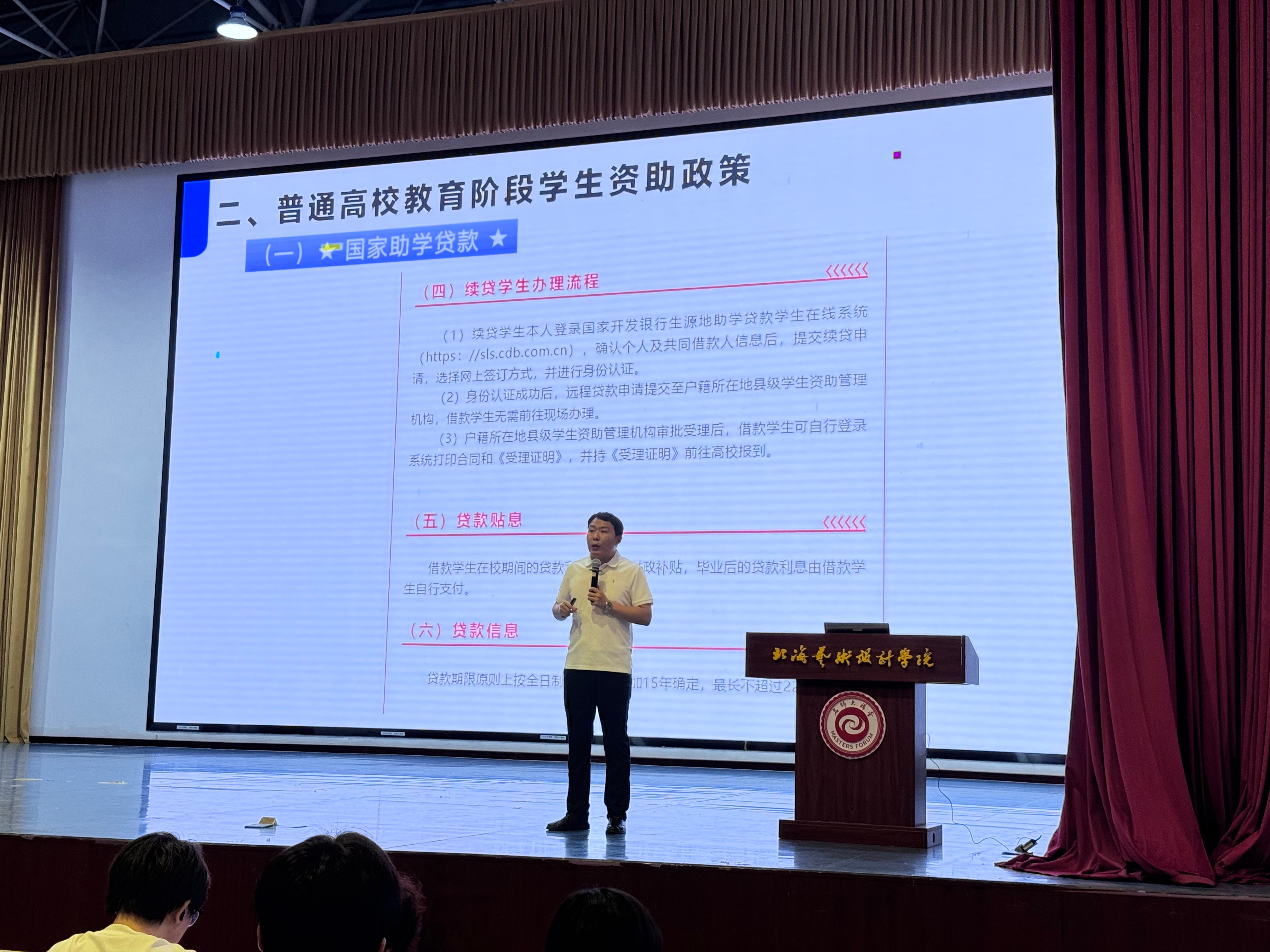 大会伊始,巴瑞斌副书记围绕国家资助政策体系展开宣讲。他详细解读了国家奖学金、助学金、助学贷款等项目的申请条件、发放流程及后续管理要求,重点强调了“诚信申请、合规使用、按时履约”的核心原则。通过典型案例分析,指出部分学生因诚信缺失导致的违约后果,警示同学们要珍惜资助机会,让学生意识到逾期还款不仅造成罚息和违约金,我们的个人信用还会受损,还可能会被催债,被起诉,违约情节严重的贷款人还将承担相关法律责任。