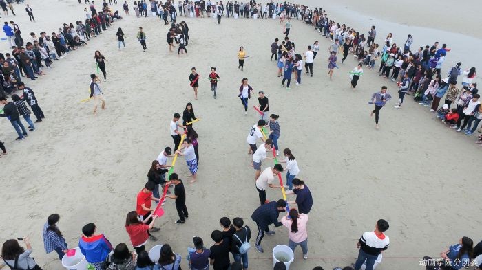 谁说艺校的孩子不喜欢体育?北艺的学子同样热爱运动!在2017年北艺举行的沙滩运动会上,北艺的学子们前往银滩大展身手。海边沙雕是一项既考验脑力,又考验动手能力的一项体育活动。同学们伴着一朵朵浪花,动手做起了沙雕。撑起圆圆的太阳伞、同学们做的沙雕灰黄的海滩、雪白的浪花,点、线、面构成了一幅漂亮的图画儿。