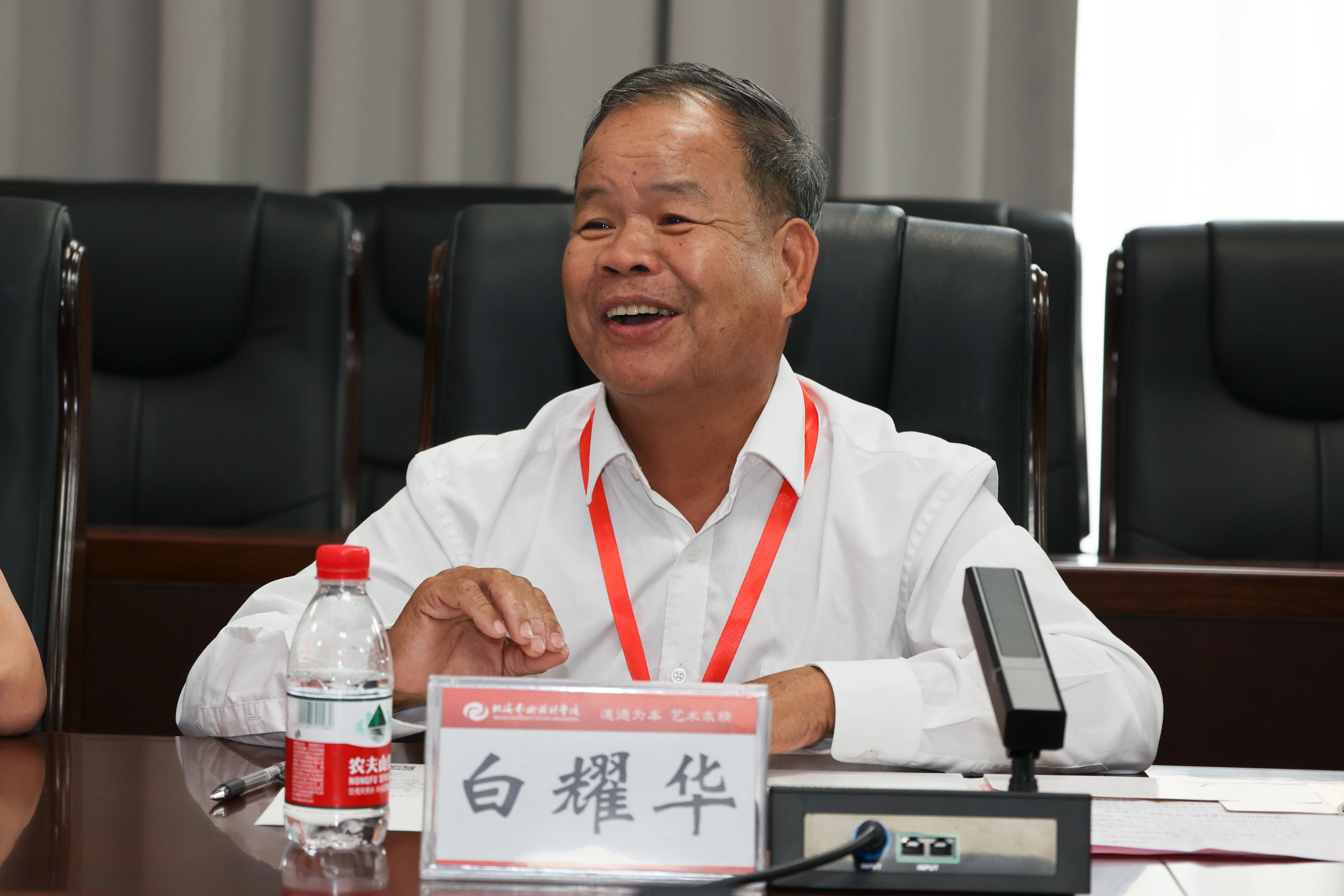 最后,北海市非物质文化遗产保护中心主任陈东作总结发言,他对此次研讨会的顺利举办和现场领导、专家教授对北海非遗事业的关注及大力支持表示感谢。他表示希望白大师在培养徒弟、传承授课等方面能够更多地与学校开展校企合作,依托北海艺术设计学院,联合打造相关专业课程,培养角雕工艺传承人才。