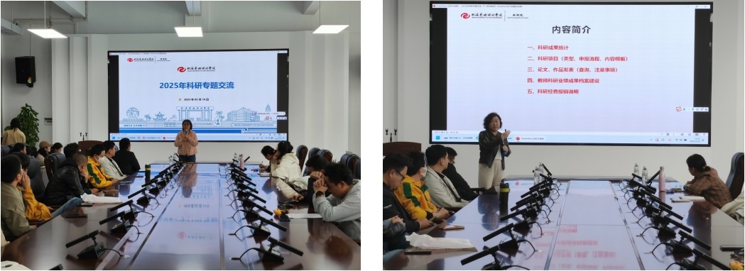 宣讲会上,分别围绕科研处科室职能和分工、学校科研相关政策文件的背景及变化、科研成果统计、论文发表、科研项目和经费管理的主要制度措施、科研诚信与学术不端等多方面问题进行了详细解读。同时,还对省部级与市厅级科研项目的申报流程、注意事项及限项规定进行了系统讲解,并特别提醒广大教师需密切关注申报的时间节点与资格条件。此外,宣讲活动就横向科研项目的登记程序、经费管理以及科研经费的使用规范等问题展开了深入探讨。