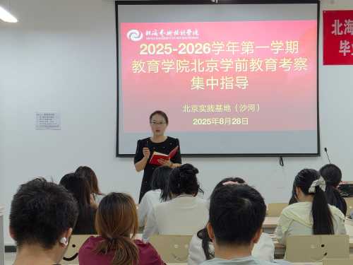为深化理论与实践结合,提升学前教育专业学生的实践能力与职业认知,2025年8月29日,教育学院2022级学前教育专业全体学生在教育学院教学副院长蒙剑英、北京实践基地副主任严腾、班主任雷蕊带领下,前往北京市昌平区巩华北科幼儿园、北科婴幼学苑开展《北京学前教育考察》课程实践活动。