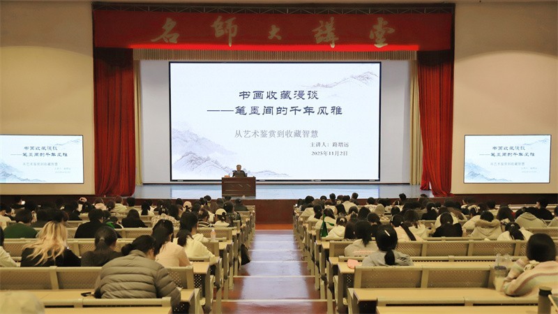 11月2日晚上,陕西省收藏家协会顾问路增远先生受邀莅临我校,在西校区大礼堂为师生带来一场题为《书画收藏漫谈》的深度讲座。讲座以深刻的理论阐释、丰富的案例解析及生动的作品分享,为在场师生开启了书画收藏领域的全新视野,引发广泛共鸣与深刻思考。