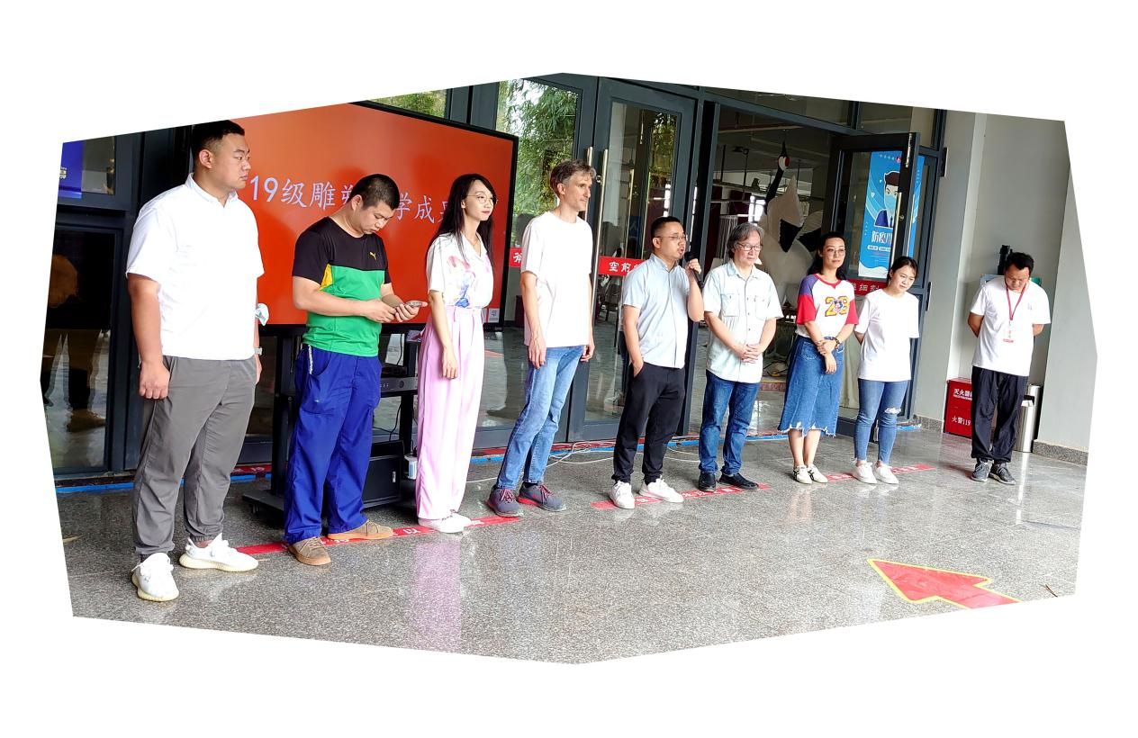 2022年6月2日上午,美术学院雕塑专业在艺术楼一楼成功举办雕塑专业“2019级教学成果展”开幕式,院领导美术学院常务副院长龚为、美术学院副院长金凯婧、美术学院副院长肖玺,其他部门领导李炫勋、鲁明阳,以及雕塑专业教师潘毅群先生、雕塑外籍教师波波夫、雕塑专业青年教师、雕塑专业全体学生参加了开幕式。开幕式由雕塑专业教师黄寿宁老师主持。