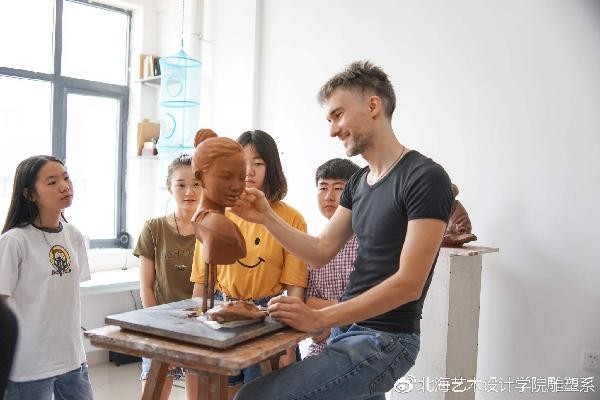 2017年5月17日。我们有幸来到到波波夫老师的工作室进行参观,波波夫老师正在给学长学姐们上课。与我们想象的不同,中文不太流利的波波夫老师并没有把课堂搞得很沉闷,反而是活跃轻松。