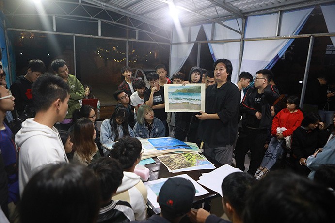 夜晚回归到住宅处,教授与各班主任,老师欢聚一堂对同学们完成的作品,进行点评和教学,对出现的疑惑、问题都一一解析和传授经验、技法