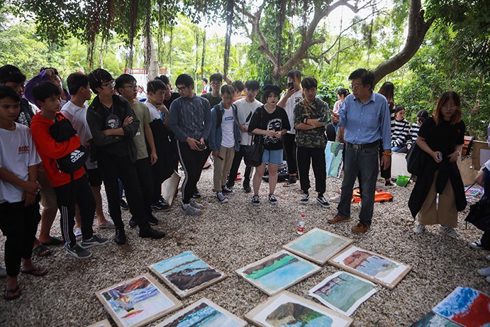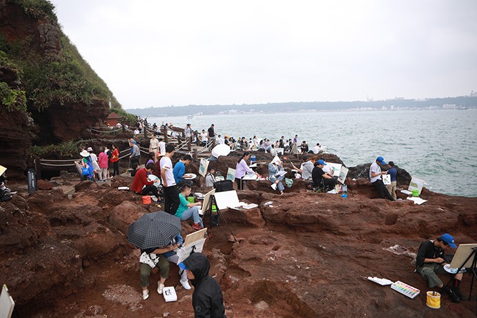 依据学校教学安排,北艺师生们先后到达火山口公园、码头、天主教堂进行写生实践活动与艺术创作。在各领导和教师的带领下,同学们迫不及待的举起手中的相机、手机共同记录下此时此刻的自然美景与人文景观。与此同时,大家对涠洲岛的特色与民族风情,历史渊源有了进一步的了解与认识。这更让大家感受到艺术与自然之间的联系,对此,同学们纷纷拿出画具与颜料进行了艺术创作。