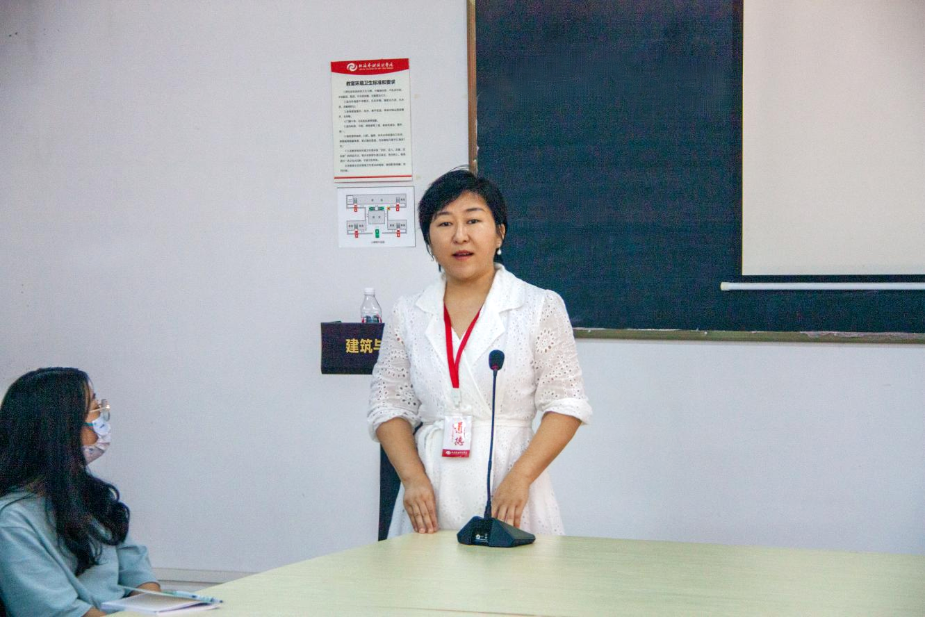 最后,建筑与环境艺术学院环境设计教研室主任聂明丽代表讲话,聂明丽老师用亲身经历告诉同学们大胆尝试、勇于突破,也有望本次分享会能使同学们谨遵教诲、吸取经验,脚踏实地走向成功。