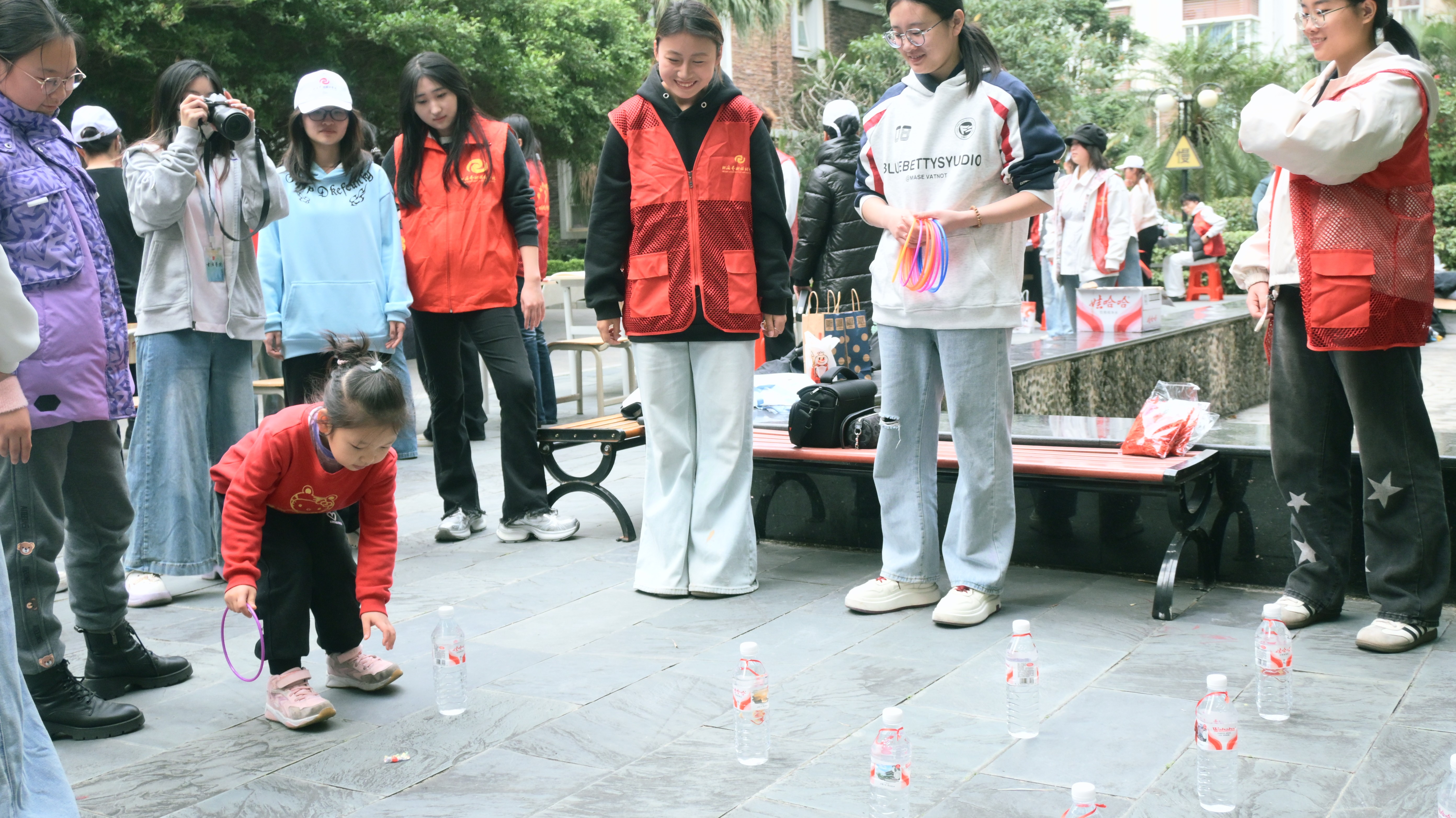 趣味套圈活动区同样欢声不断,志愿者与社区儿童亲切互动,在游戏中传递温暖,融洽了邻里关系,营造出浓厚的节日氛围。