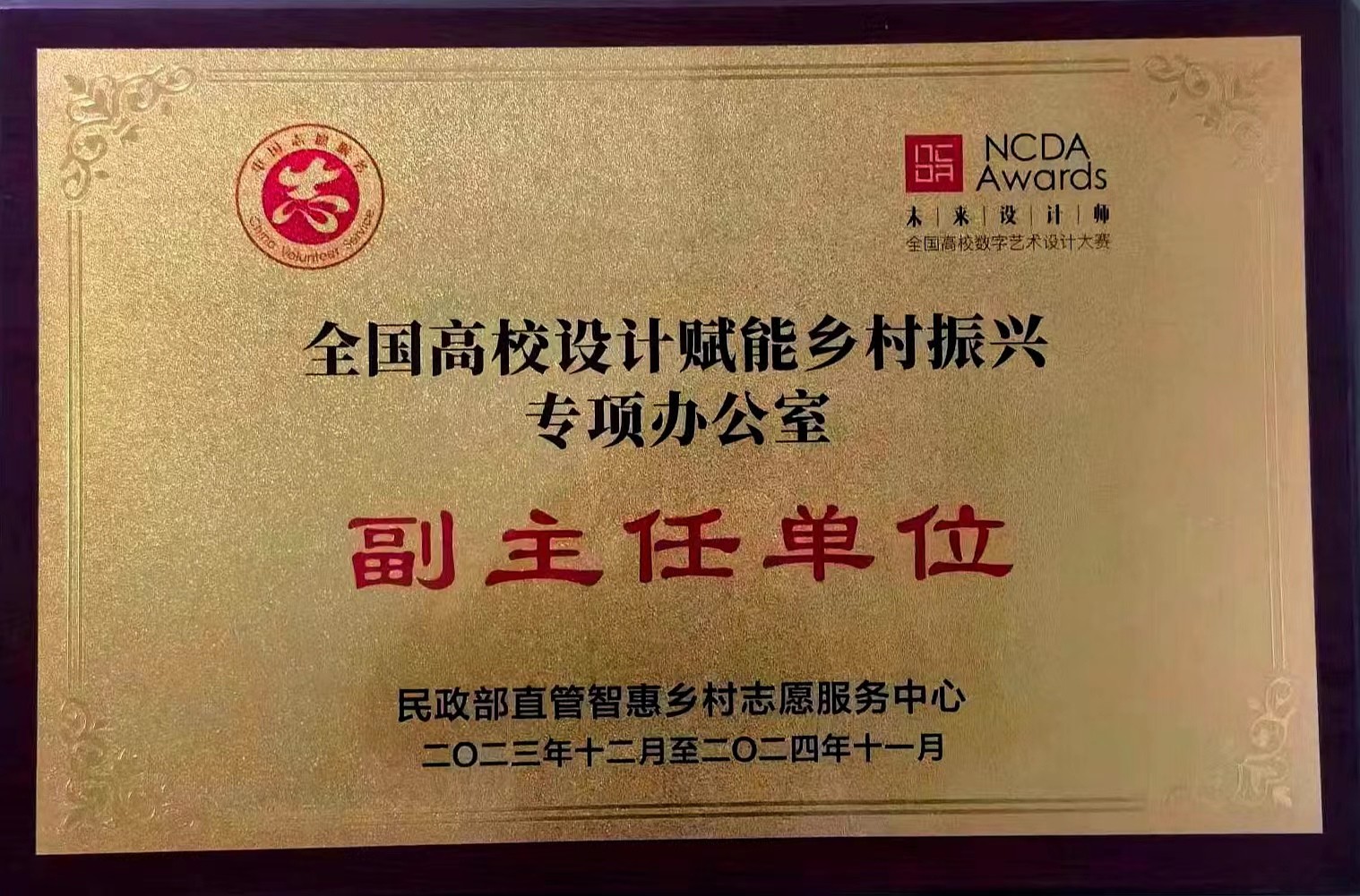 “全国高校设计赋能乡村振兴专项办公室——副主任单位”奖牌