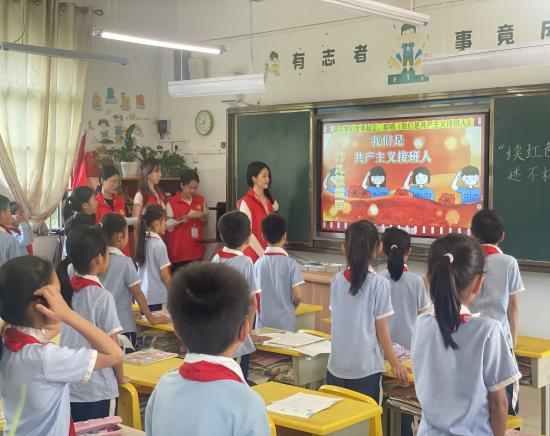 此次活动不仅为小学生播撒了红色种子,也为文学院学子提供了实践平台,用青春视角创新红色教育形式,实现了双向赋能共成长。学生们纷纷表示,通过这次主题班会,自己对北海的红色历史有了更深入的了解,在准备和讲述的过程中,也更加深刻地体会到了革命精神的内涵和价值。今后,学院将计划继续开展系列主题活动,推动红色教育走深走实,让革命精神在新时代绽放光芒。(马有泽/摄)