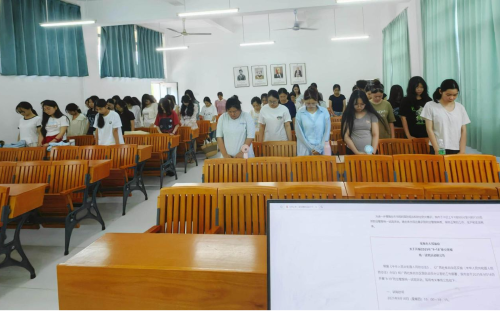 与此同时,在《新闻采访与写作》的课堂上正开展着另一场特殊的爱国主义教育。9月18日上午,当防空警报响彻校园,党员教师文春明组织学生肃立默哀,缅怀先烈。默哀的三分钟里,教室鸦雀无声,学生们挺直腰背、神情肃穆,对历史的敬畏与对先烈的缅怀在无声中传递。后续授课内容围绕“马克思主义新闻观”展开,文春明老师结合“九一八”与今年九三阅兵等思政元素,通过课件图文、视频展示及富有激情的语言深化教育,展现了一场生动的思政课堂。文春明老师在课程中融入思政元素、实现思政教育与课堂场景自然结合的这一教学做法得到了教育督导的高度肯定。