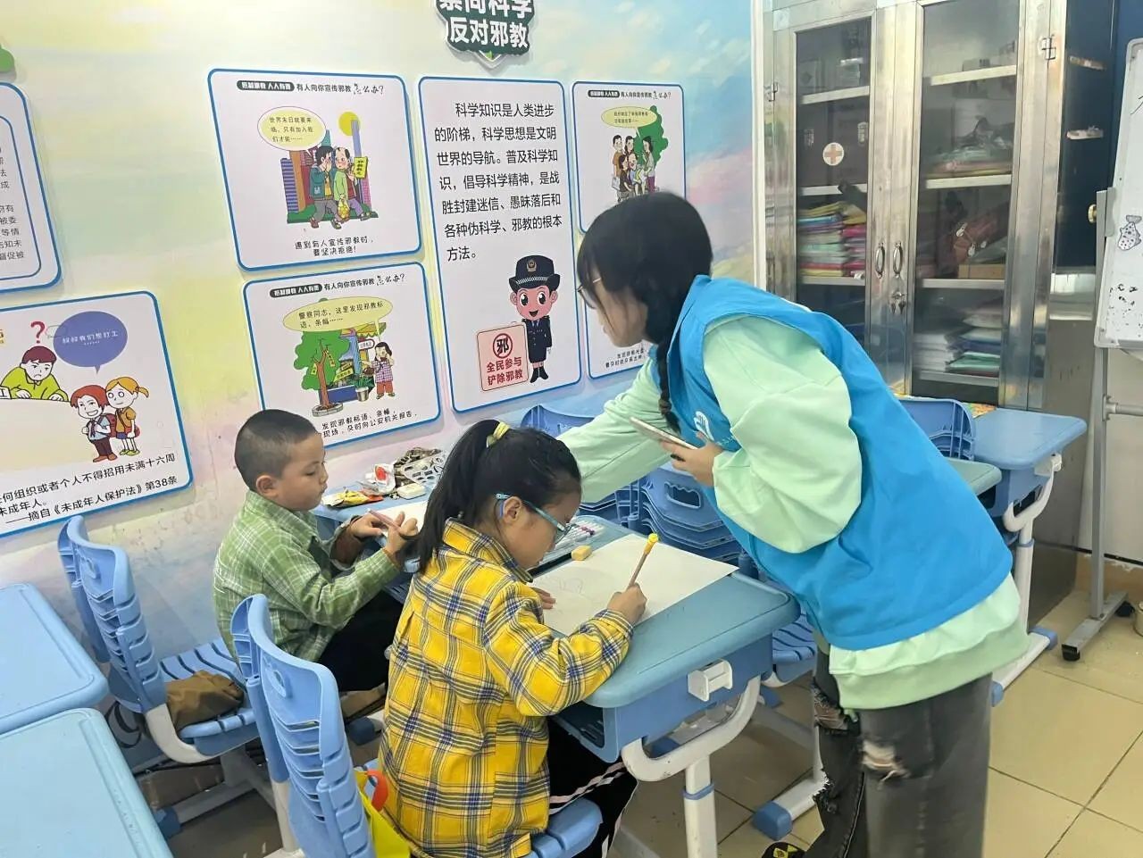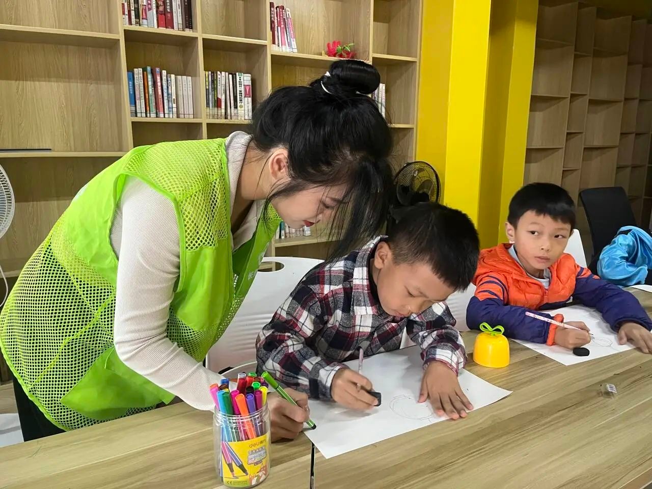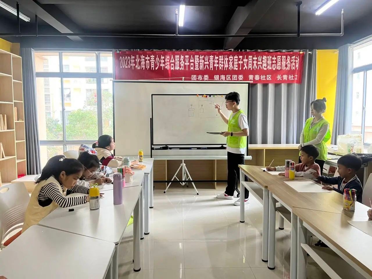 以青春之名,赴时代之约。2023年12月9日,我校团委青年志愿者协会数名志愿者前往疍家小镇和侨北社区开展本周的周末课堂。他们以昂扬的斗志,饱满的热情迎接每一位孩子的到来。这次的支教课堂开设的是绘画课程,以老师为主导,孩子为主体,用绘画创作来培养孩子的兴趣。