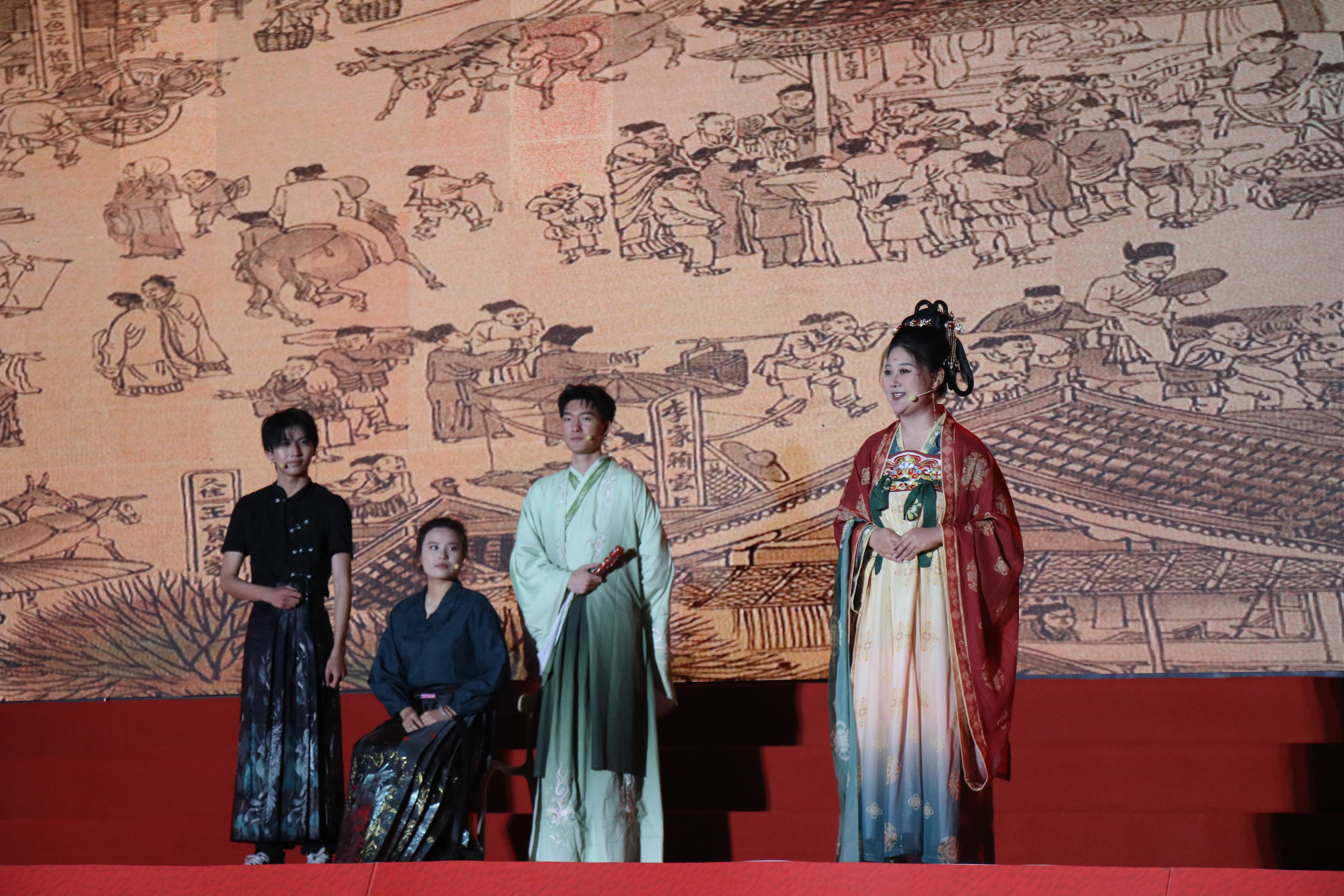 走秀《华夏霓裳秀--千年的祈愿》模特们身着华丽汉服,优雅台步仿佛穿越时空,尽显中华传统服饰魅力。