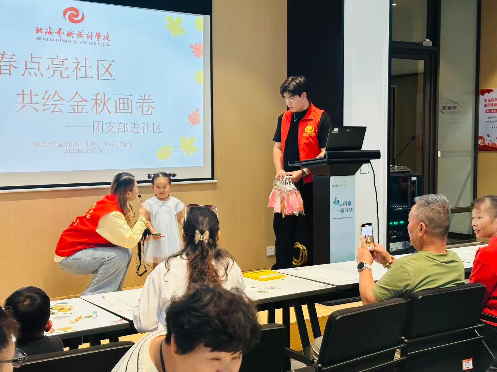 本次双主题活动的成功举办,是传媒艺术学院学子将专业所学服务于社会的一次生动实践。它不仅增强了学生的动手能力与社会实践能力,更深化了校社联动,用青春与创意共同绘就了一幅名副其实的“金秋最美社区画卷”。(传媒艺术学院/摄)